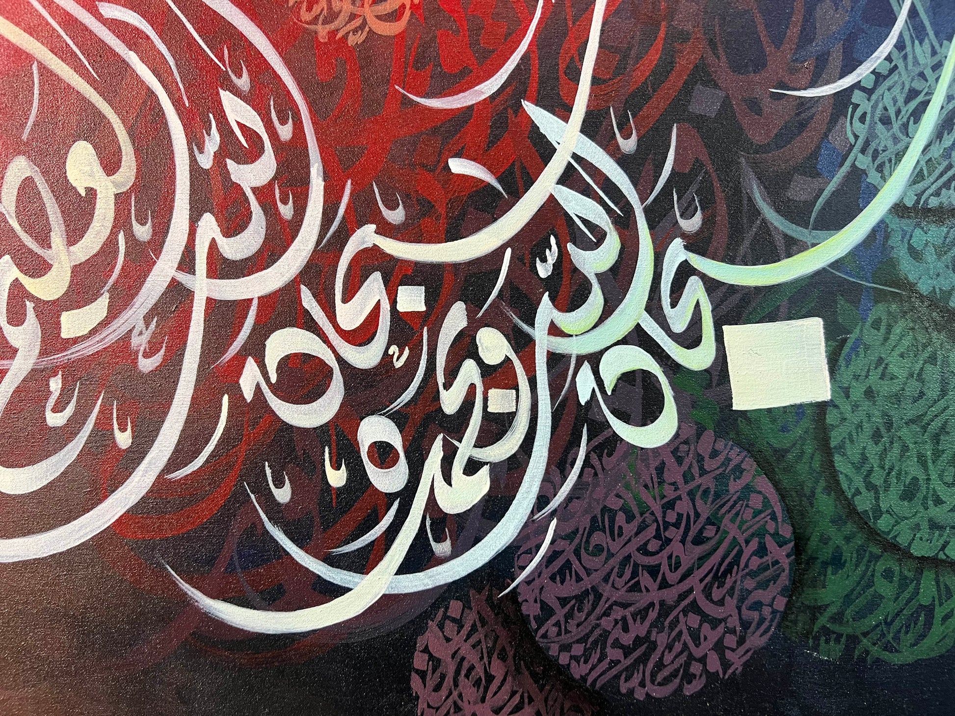 This contemporary Islamic calligraphy painting by Muhammad Yasir Azeemi (Paintastic Valley) features the beautiful dhikr: